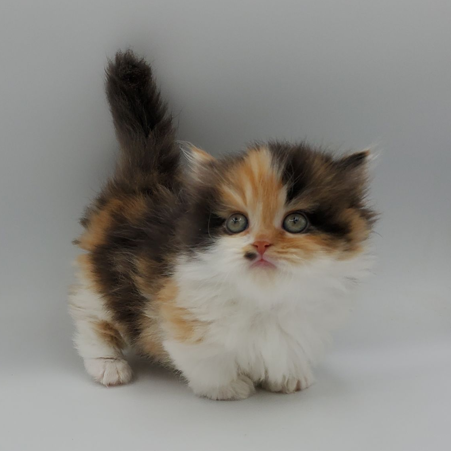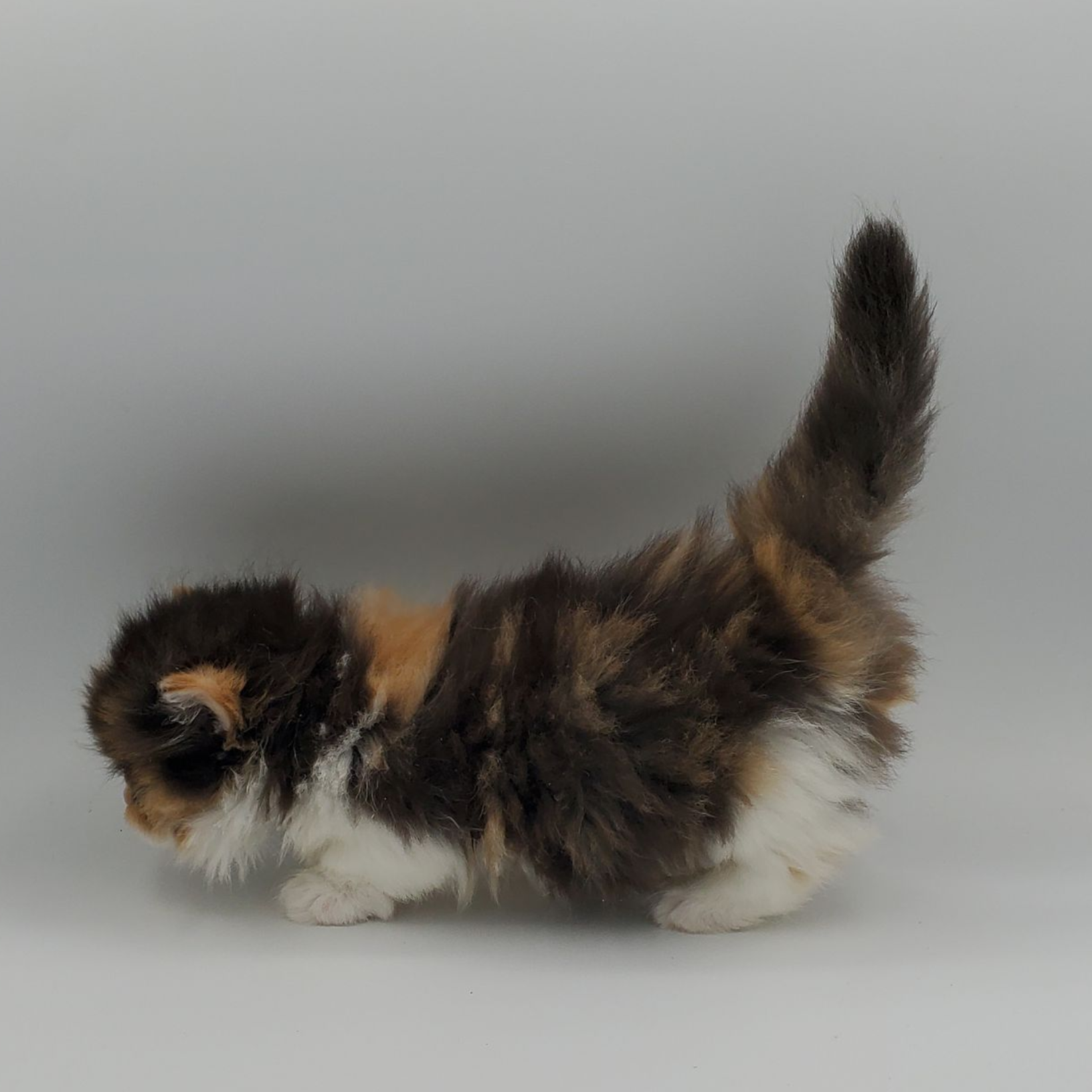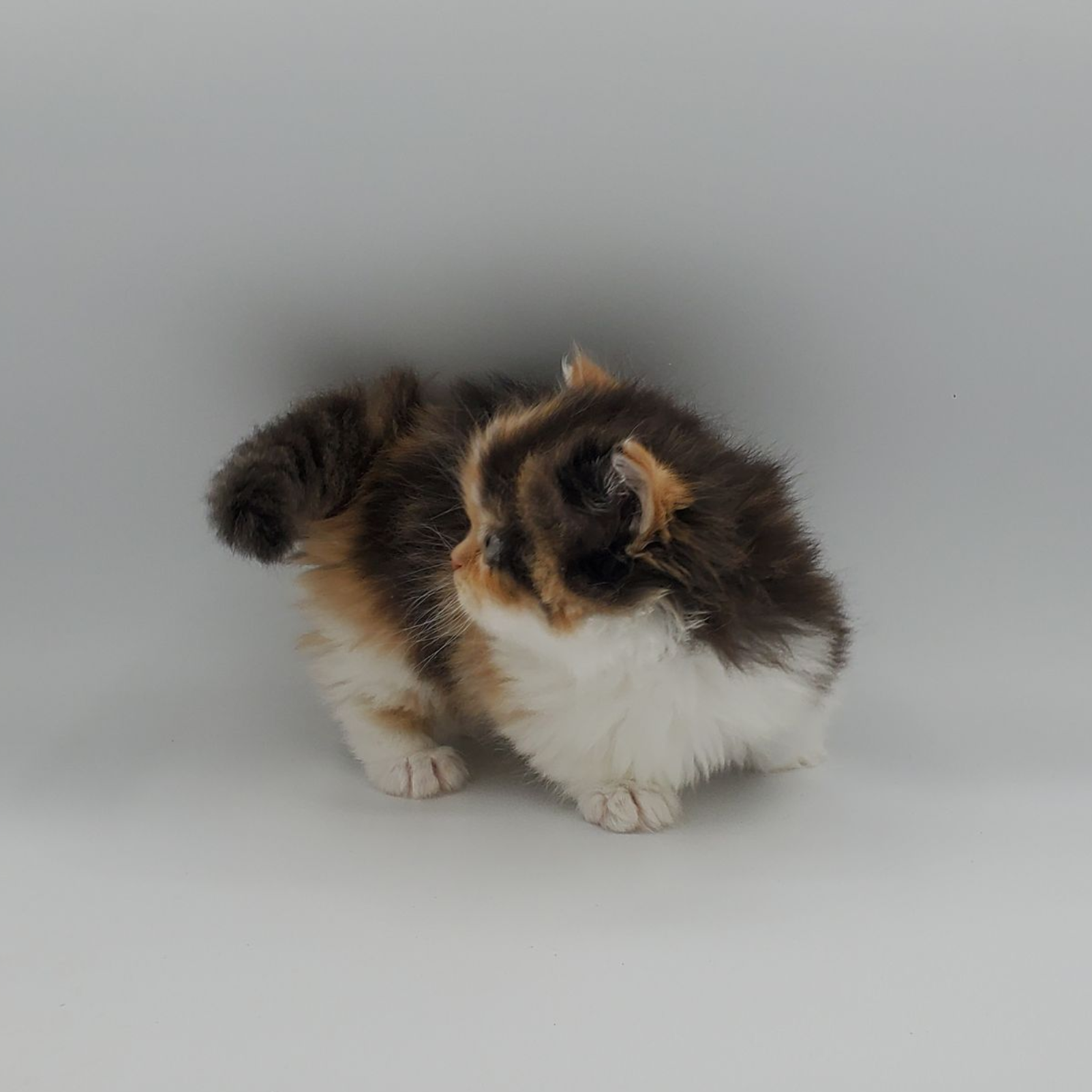 Ulta's name came from none other than "Ulta Beauty" - can you see why? She's a beautiful full-color calico Minuet (Persian Munchkin) from Fancy and Brimley's September 2025 Litter with an irresistible beauty mark mimicking the famous Marilyn Monroe. She loves romping and playing with her siblings, and also has the tiniest bit of sass which calicos are known for.